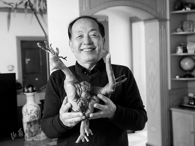 刻印章、畫國畫、練書法,再到近幾年癡迷的根雕,從選材、設計到雕刻、打磨,再到拼接、刻字、畫畫,牛鳴遠把多種藝術形式融合在根雕中,將別人眼中的廢料打造成獨具特色的工藝品。他說,這是他對生活的熱愛,他愿每一位退休后的老人都能找到屬于自己的愛好,將生活過得豐富多彩。