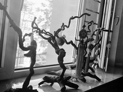 見到牛鳴遠時,他正忙著在家中的陽臺上懸掛兩個大樹枝。“這是棗樹枝,還有點濕,得掛起來晾干后才能再進行加工?!迸xQ遠說,朋友收拾平遙老家的房子時,砍了院子里的大棗樹,知道他喜歡根雕,就專門運回來一些送給他。