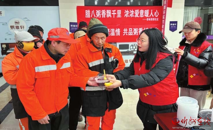 俗話(huà)說(shuō)“過(guò)了臘八就是年”,年味就是從一碗熱氣騰騰的臘八粥開(kāi)始的。寒冬臘月,忻府區(qū)杏林西街社區(qū)攜手愛(ài)心企業(yè)寒冬送溫情,為奮戰(zhàn)在一線(xiàn)的環(huán)衛(wèi)工人熬制了熱氣騰騰的紅豆粥。