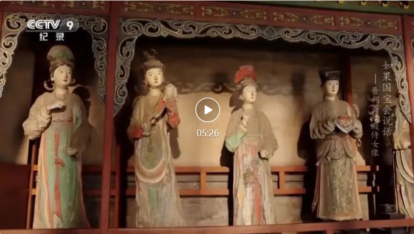 晉祠圣母殿侍女像作于北宋元佑年間,約1082年左右,是晉祠彩塑中最出色的一組人物塑像。伴隨著微弱的光,一尊尊宋代侍女塑像便緩緩走進(jìn)了紀(jì)錄片的鏡頭。