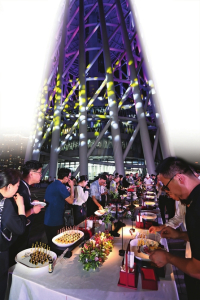 在“山西之夜”,嘉賓們有無數(shù)種打開山西的方式,美食無疑是最直接的一種。廣州塔二層的室外場地上,冷餐會(huì)重點(diǎn)圍繞我省11市特色美食,推出16道菜品、5種小吃、26種飲品、7種干果和4種水果。