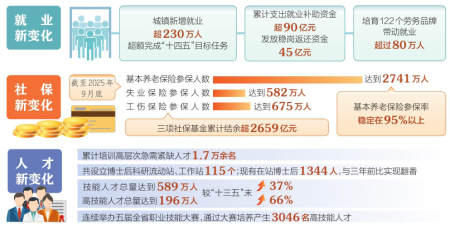 “十四五”時(shí)期,我省始終將穩(wěn)就業(yè)擺在突出位置,千方百計(jì)促進(jìn)高質(zhì)量充分就業(yè)。把經(jīng)濟(jì)發(fā)展與擴(kuò)大就業(yè)緊密結(jié)合起來(lái),不斷優(yōu)化政策,為企業(yè)減負(fù)穩(wěn)崗,累計(jì)支出就業(yè)補(bǔ)助資金超90億元,發(fā)放穩(wěn)崗返還資金45億元。對(duì)于重點(diǎn)群體精準(zhǔn)施策、分類幫扶,開展高校畢業(yè)生等青年群體就業(yè)服務(wù)攻堅(jiān)行動(dòng),提供針對(duì)性就業(yè)創(chuàng)業(yè)服務(wù)。五年來(lái),全省城鎮(zhèn)新增就業(yè)超230萬(wàn)人,超額完成“十四五”目標(biāo)任務(wù),城鎮(zhèn)調(diào)查失業(yè)率控制在目標(biāo)以內(nèi)。
