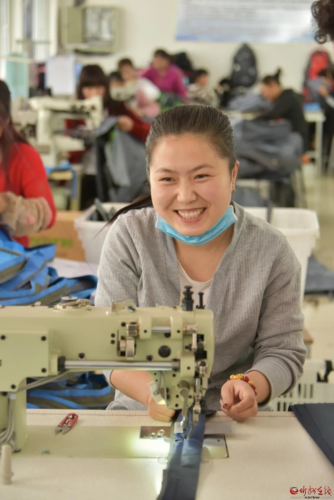 繁峙縣濱河移民小區(qū)箱包加工車間。忻州日報資料圖