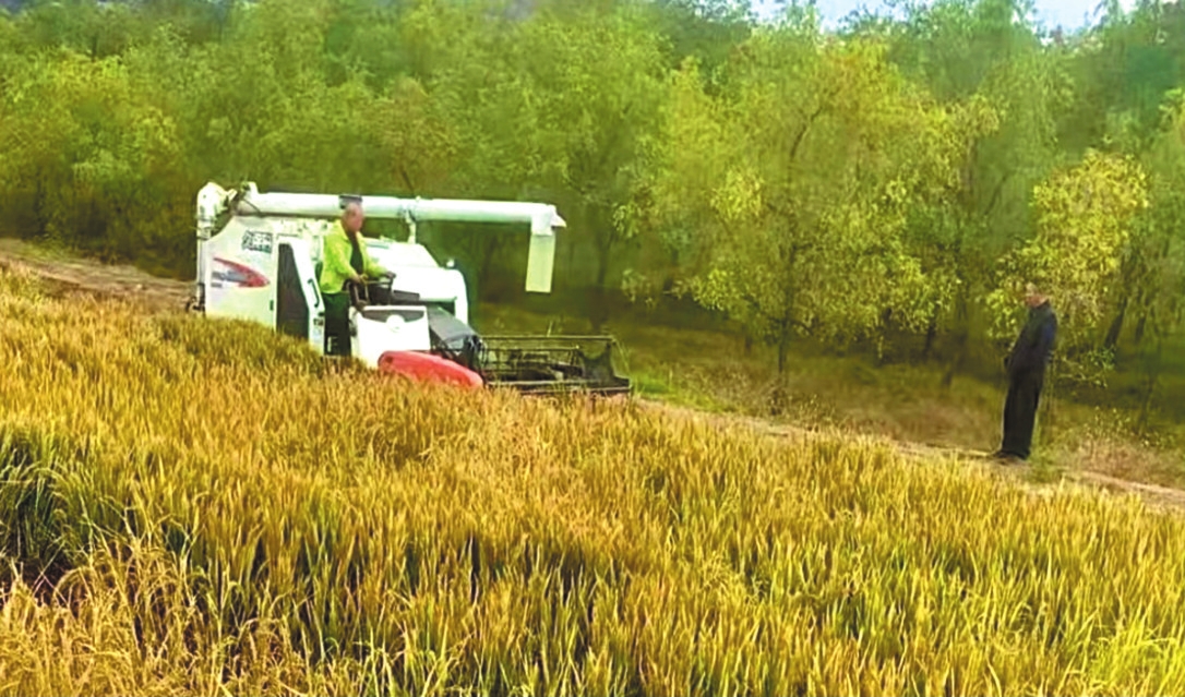 金秋時(shí)節(jié),保德縣馮家川鄉(xiāng)的20余畝鹽堿地試種稻田里,金黃稻穗壓彎了稻稈,微風(fēng)拂過(guò),掀起層層“金浪”。隨著聯(lián)合收割機(jī)的轟鳴聲響起,成片水稻被快速切割、脫粒、清選,飽滿的谷粒源源不斷地被送入儲(chǔ)糧箱,標(biāo)志著當(dāng)?shù)厥状嘻}堿地水稻試種迎來(lái)豐收。經(jīng)測(cè)算,畝產(chǎn)達(dá)830斤左右,順利達(dá)成預(yù)期產(chǎn)量目標(biāo)。