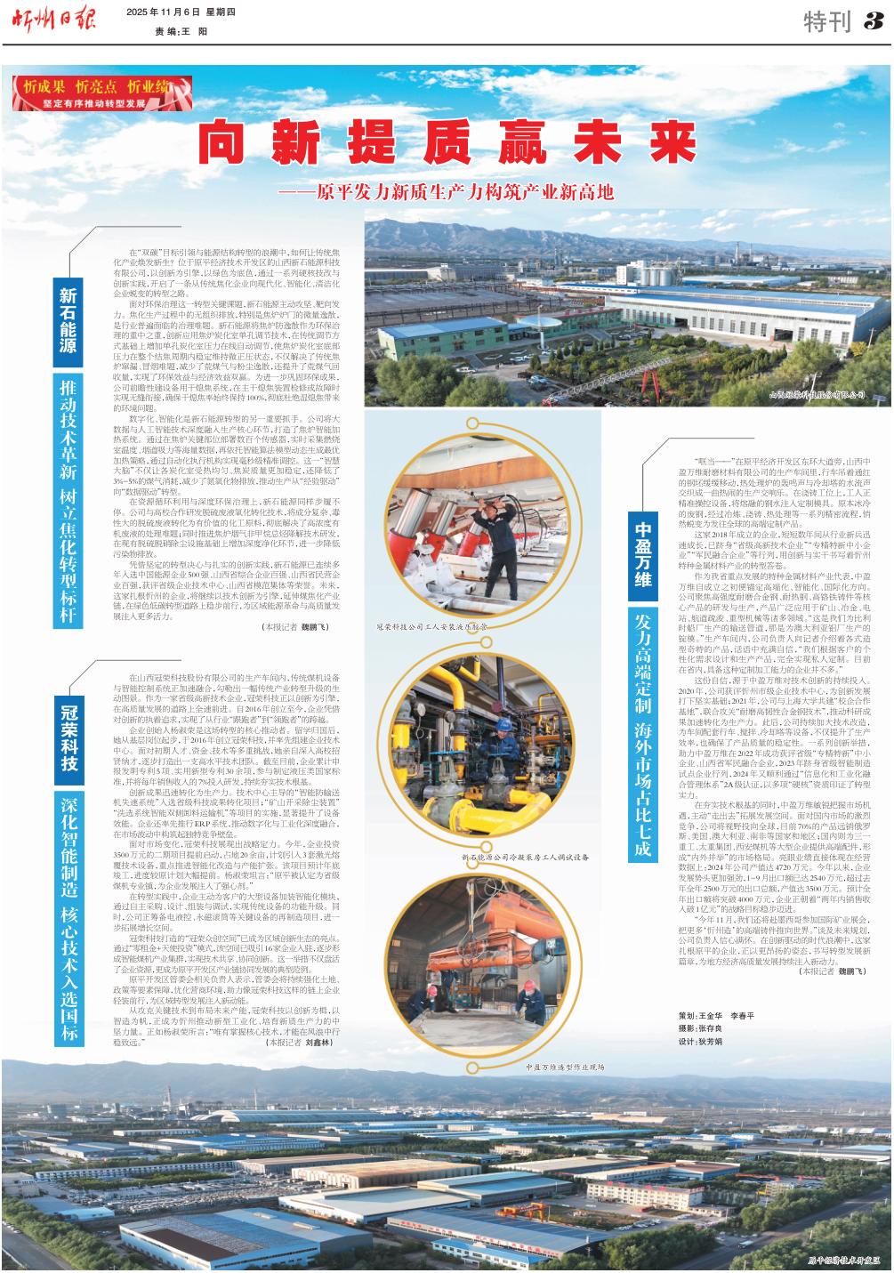 從攻克關(guān)鍵技術(shù)到布局未來產(chǎn)能,冠榮科技以創(chuàng)新為楫,以智造為帆,正成為忻州推動(dòng)新型工業(yè)化、培育新質(zhì)生產(chǎn)力的中堅(jiān)力量。正如楊淑榮所言:“唯有掌握核心技術(shù),才能在風(fēng)浪中行穩(wěn)致遠(yuǎn)。”(本報(bào)記者劉鑫林)