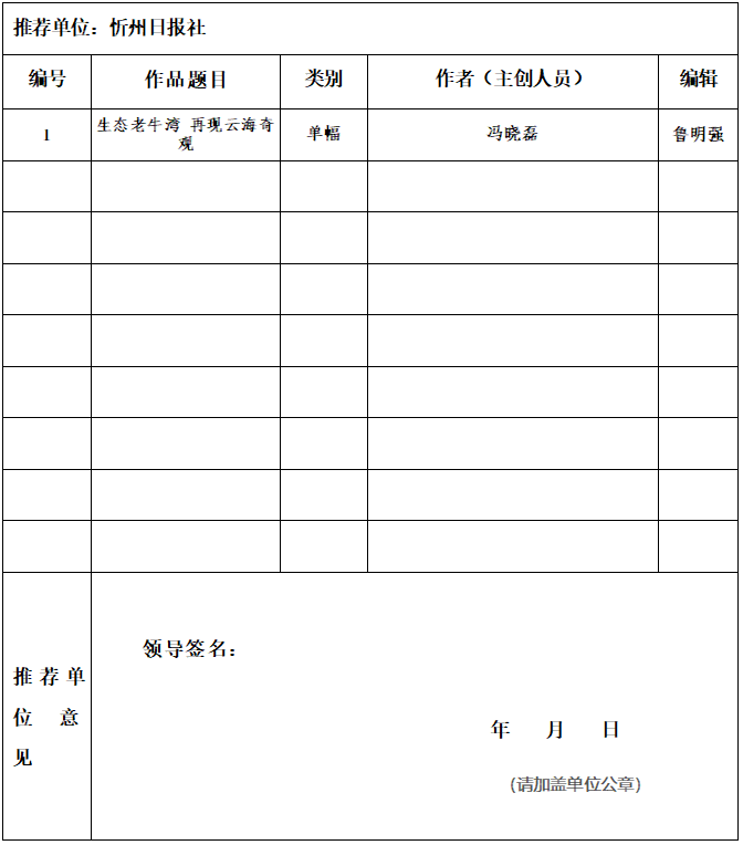 “備注”欄內(nèi)請標注作品類別,如新媒體、報紙、通訊社、廣播、電視、期刊等。同時備注是否為深度報道、輿論監(jiān)督、時事評論作品。請按照規(guī)定名額報送,超額報送的,撤下此目錄中排序靠后的作品。