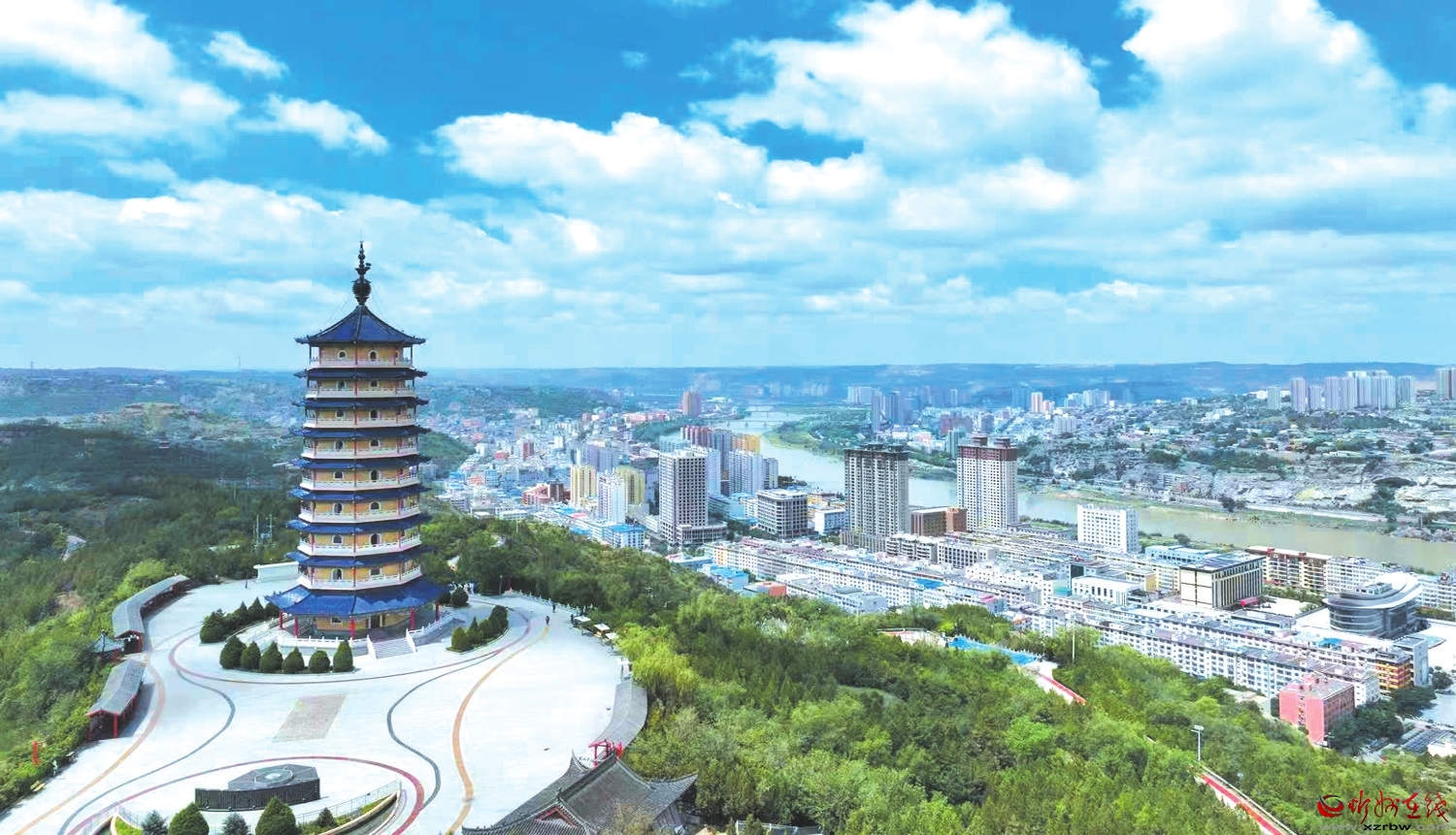 登塔遠(yuǎn)眺,黃河如綠綢帶纏繞晉陜峽谷,黃土高原上的溝壑如大地掌紋,保德城煙火與山河雄奇交融,讓人嘆服晉西北的壯美與溫柔。檐角風(fēng)鈴輕響,把山與城的故事,講給每個(gè)登高者。