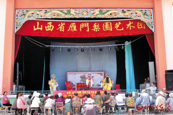 本報訊 薪火相傳梨園情,送戲下鄉(xiāng)頌黨恩。7月3日上午10時許,代縣峨口鎮(zhèn)上木角村委會大院的“瑞祥舞臺”上,鑼鼓鏗鏘,喧樂縈耳,熱鬧非凡,代縣雁門梨園藝術(shù)團(原代縣峨口退休老干部戲迷樂開心藝術(shù)團)正在這里演出,與該村黨員干部群眾共慶黨的99周年華誕,歌頌黨的恩情。演職人員以群眾喜聞樂見的形式,抒發(fā)老干部愛黨、愛國,永遠(yuǎn)跟黨走的豪情壯志。