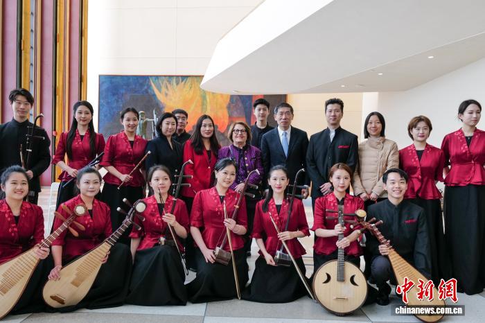 當?shù)貢r間2月25日,來自中央音樂學院的民樂演奏家在紐約聯(lián)合國總部上演快閃音樂會。圖為音樂會現(xiàn)場。 中新社記者 王帆 攝