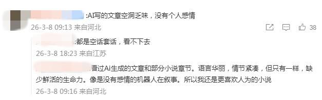 有報道稱,社交媒體上的AI寫作暴富噱頭,讓網(wǎng)文圈變了天。有網(wǎng)文作家坦言,自己日更近萬字已是極限,但在AI幾分鐘幾萬字面前,直接被降維打擊。評論區(qū)里,網(wǎng)友議論紛紛,“AI寫的文章空洞乏味,沒有個人感情”“有一本AI文火的嗎”……