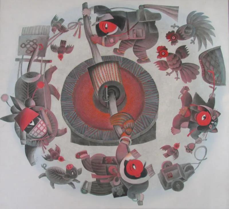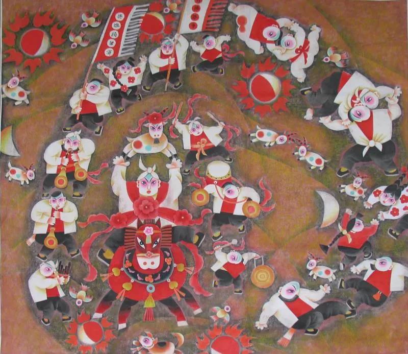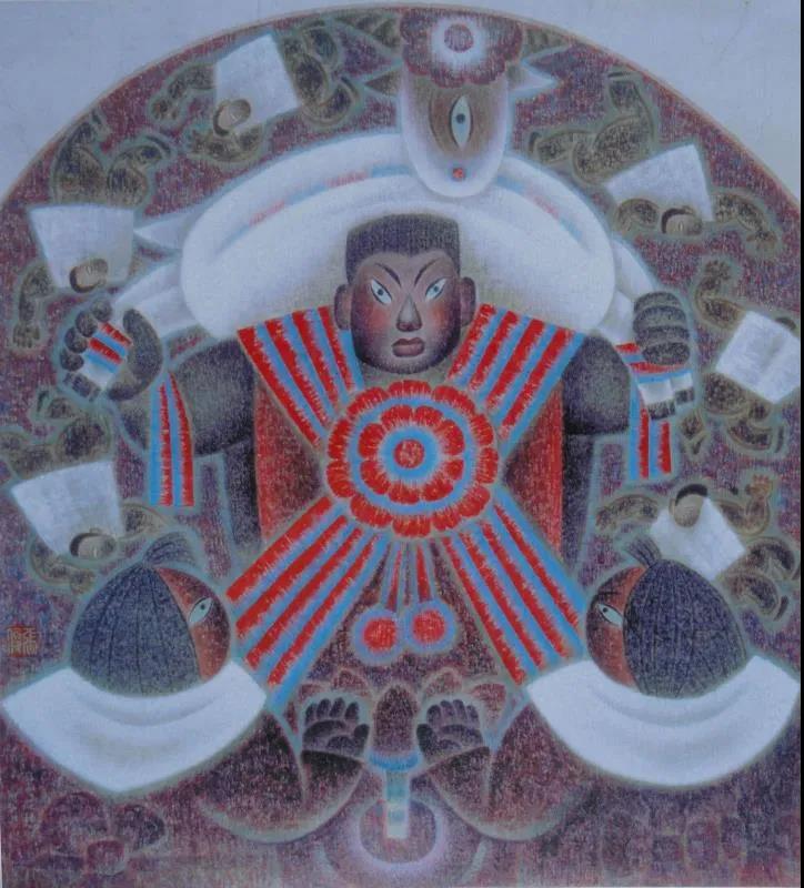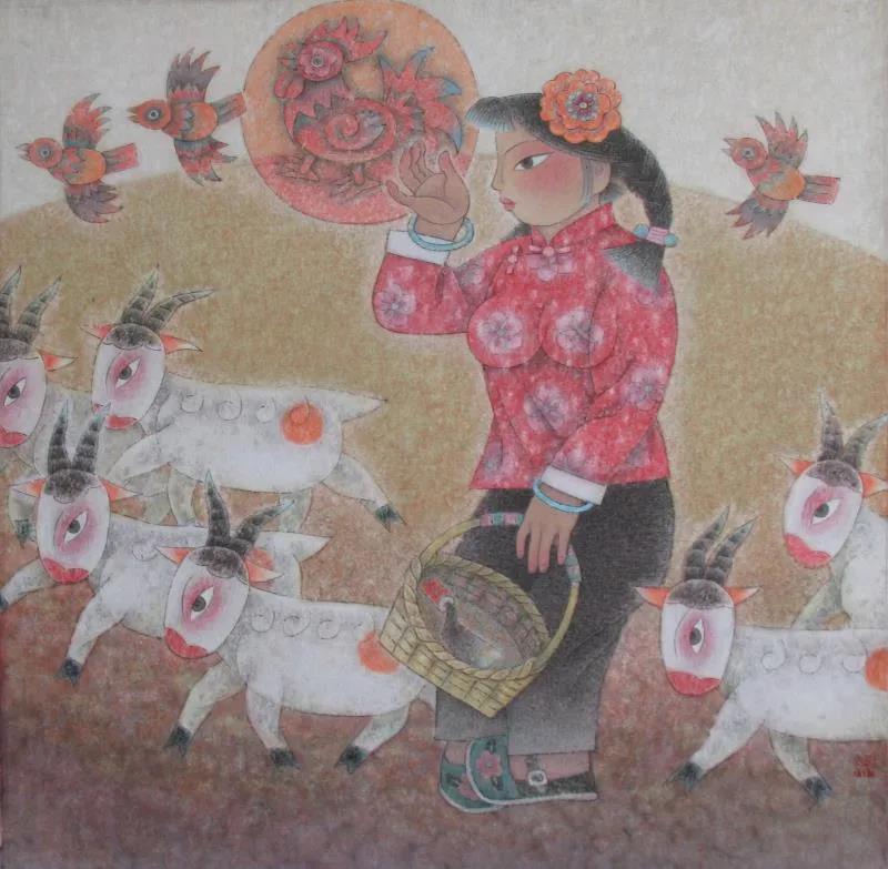 1973年開始自學美術并業(yè)余創(chuàng)作,專國畫兼及水粉、漫畫、剪紙。數(shù)十年來廣采博收,上溯遠古巖畫、畫像磚、石、帛畫、洞窟壁畫、院體工筆以及民間剪紙、泥塑,面塑、年畫;橫向上油畫、版畫、裝飾、現(xiàn)代設計乃至西方藝術皆有涉獵吸收,融匯貫通,形成了一種既富傳統(tǒng)民族特色、鄉(xiāng)土味濃郁,又極具現(xiàn)代感的、自成一格的個人風格。