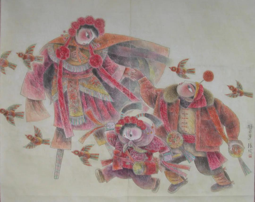 張俊這位畫家的畫就很有山西年畫的特點,又吸收了山西民間藝術的東西,很有特色。這不光在其他省很少見,就是放到全國的展覽上也很少見。共性中的個性就是藝術。