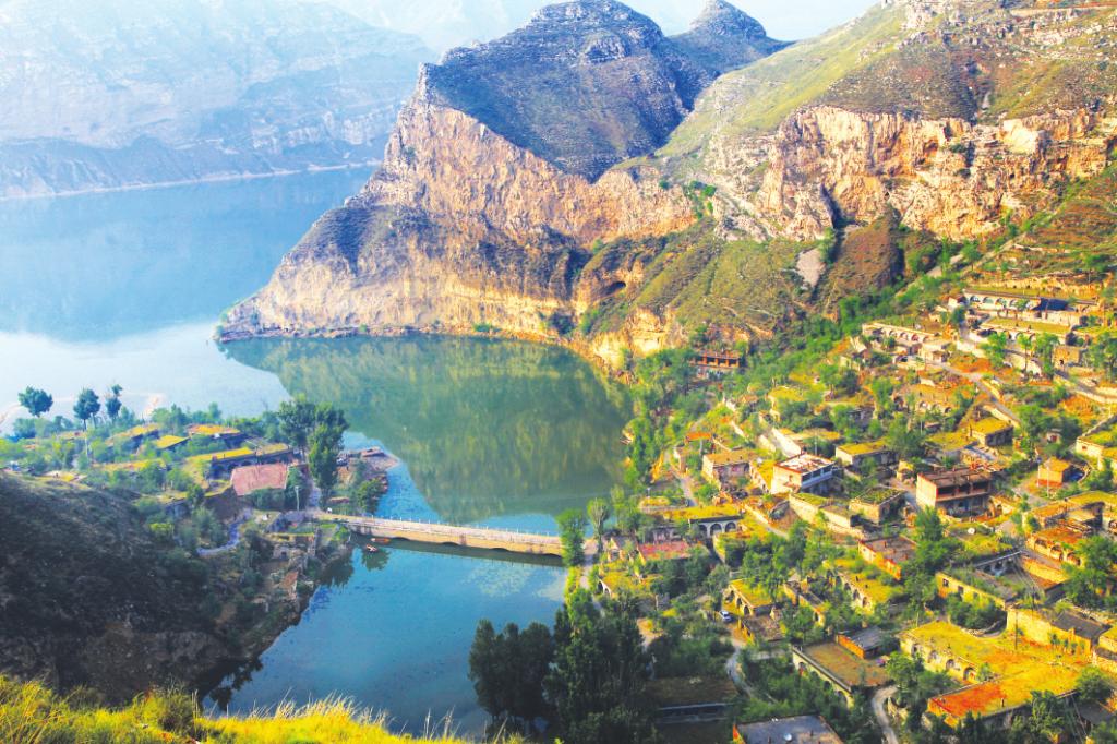 在黃河上形如半島的一個回水灣上,清清的關(guān)河水從東邊流來,匯入了黃河。對面是高山和村莊上的排排石頭窯洞,一層一層地排列在緩坡的綠蔭里。河邊有果圃,河中有捕魚船,關(guān)河上還有石拱平面橋,過得去卡車,更過得去羊馬驢騾。從山水形勢上看,這里是高崖深壘,有渡口,從大面上看是一個死角,然而又是一個興于明盛于清的重要水旱碼頭,有長城、有烽火臺和古堡。康熙四十年(公元1701年)西北放墾,這里成為北糧進入晉地的轉(zhuǎn)運點。北上的晉商也由此進入黃河上游,關(guān)河口也就成了糧食、茶葉、布匹和皮毛、牲畜交流互換的水上集散地。