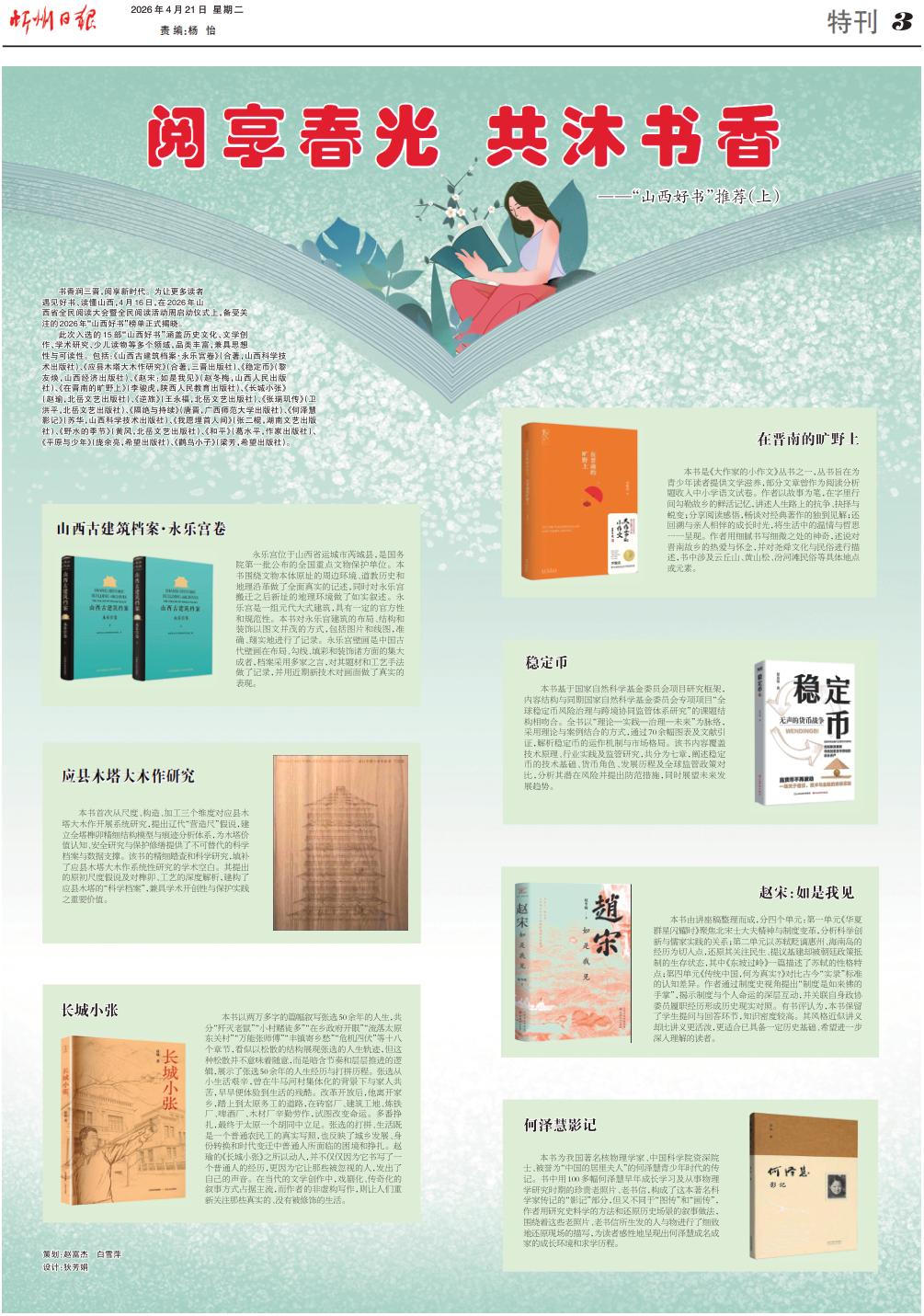 書香潤(rùn)三晉,閱享新時(shí)代。為讓更多讀者遇見好書、讀懂山西,4月16日,在2026年山西省全民閱讀大會(huì)暨全民閱讀活動(dòng)周啟動(dòng)儀式上,備受關(guān)注的2026年“山西好書”榜單正式揭曉。