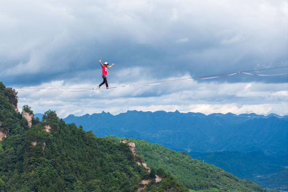 比賽時(shí),選手們系上安全繩后,從懸崖邊起步,走上一指多寬、約2毫米厚的扁帶。按照比賽規(guī)則,選手需在3次掉落次數(shù)內(nèi)完成1000米距離行走,用時(shí)最短者獲勝。