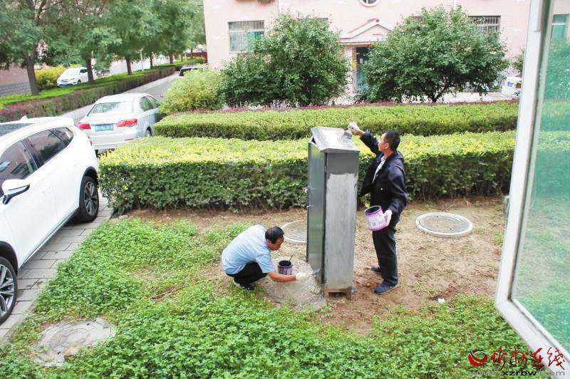 早晨起來,推開窗,發(fā)現(xiàn)兩名小區(qū)物業(yè)人員正在窗臺下給一人高的網(wǎng)線鐵箱上刷油漆,一絲不茍,特認真?;叵胄^(qū)近日點點滴滴的變化,感慨萬分:創(chuàng)文已融入我們生活的方方面面。