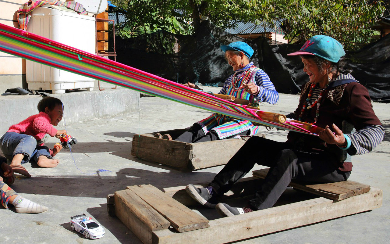 △獨(dú)龍族紋面女在織當(dāng)?shù)靥赜械莫?dú)龍?zhí)骸?/span> 2018年,獨(dú)龍江鄉(xiāng)6個(gè)行政村整體脫貧,獨(dú)龍族實(shí)現(xiàn)整族脫貧,基礎(chǔ)設(shè)施、特色產(chǎn)業(yè)、社會(huì)事業(yè)等都發(fā)生了巨大變化。貢山縣干部群眾再次給習(xí)近平寫信匯報(bào)脫貧成績(jī),習(xí)近平得知后非常高興,向他們表示“衷心的祝賀”,并勉勵(lì)鄉(xiāng)親們?yōu)檫^(guò)上更加幸福美好的生活繼續(xù)團(tuán)結(jié)奮斗。