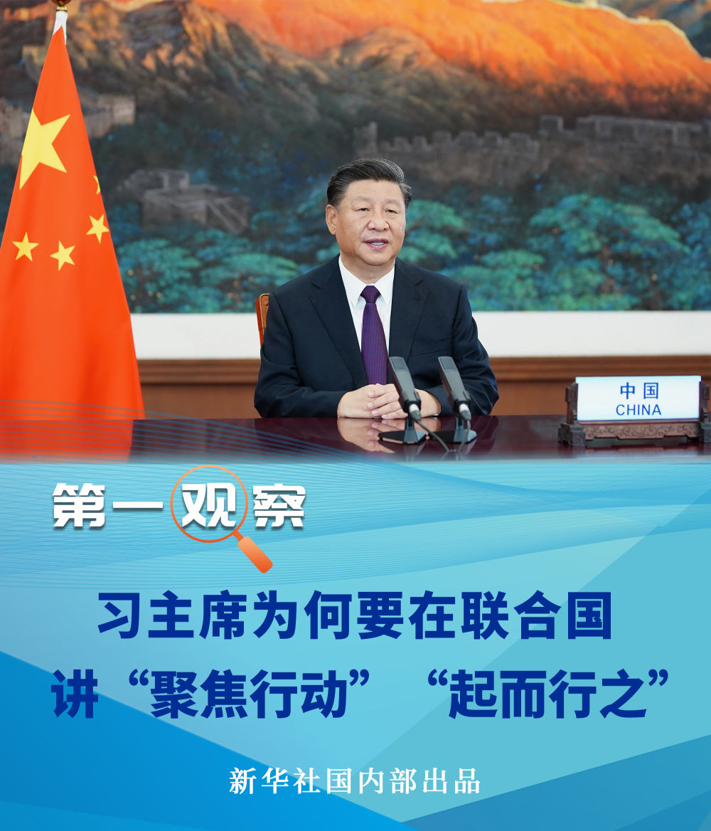 21日,在聯(lián)合國成立75周年紀念峰會上,習近平主席就聯(lián)合國如何發(fā)揮作用提出四點建議,其中點出“聚焦行動”這一關(guān)鍵詞,強調(diào)“不能只開藥方,不見療效”。