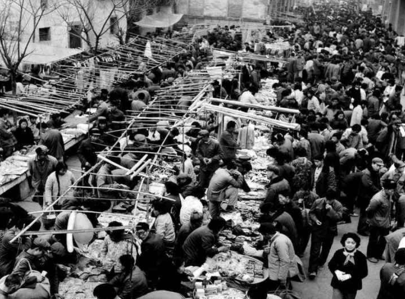 1982年,義烏湖清門馬路市場(chǎng)場(chǎng)景。