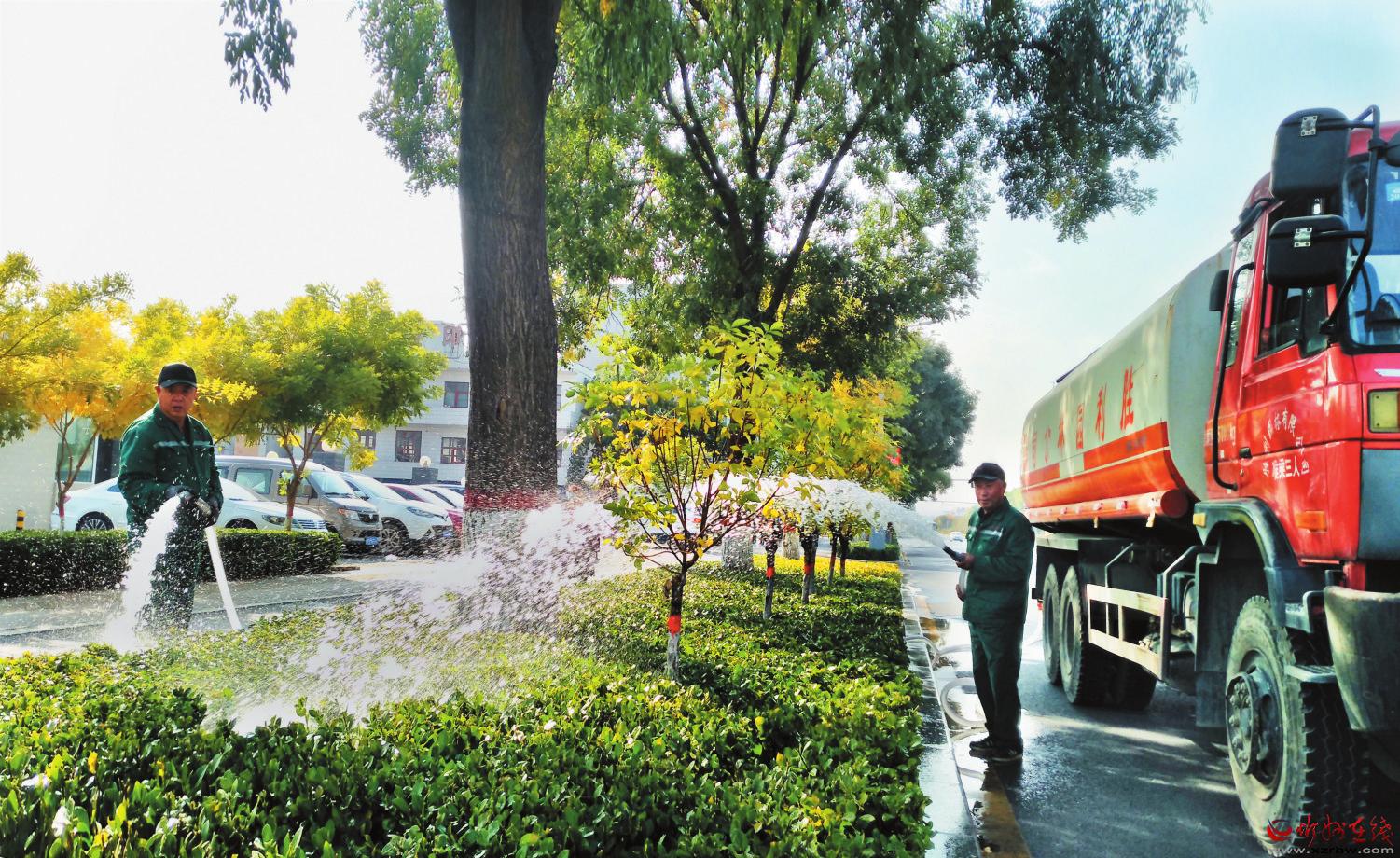 10月15日,園林工人正在忻州城區(qū)長(zhǎng)征西街澆灌道路兩旁的綠植,精心養(yǎng)護(hù),讓綠化成果成為城市的亮點(diǎn)。 (宮清華 攝)