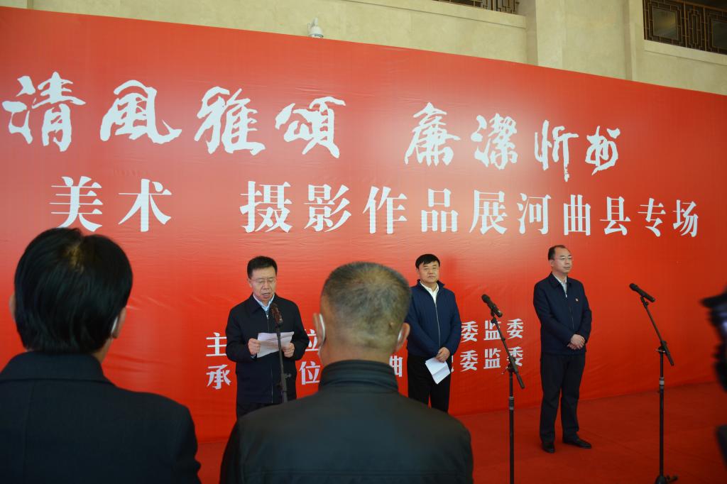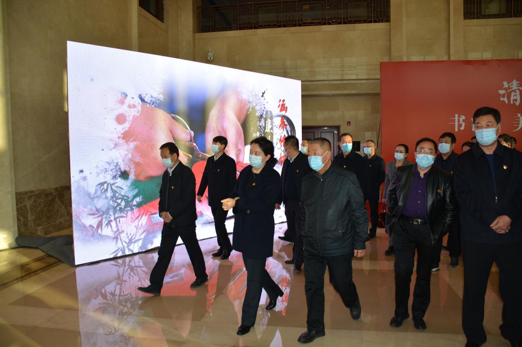 翰墨丹青揚正氣,清風(fēng)廉韻沁民心。11月10日,由忻州市紀委監(jiān)委主辦,河曲縣紀委監(jiān)委承辦的“清風(fēng)雅頌·廉潔忻州”書畫美術(shù)攝影展河曲縣專場,在臨隩公園美術(shù)館開展。市政協(xié)副主席、縣委書記邊東圣出席儀式并作重要講話,縣委副書記、縣長任鴻賓宣布“清風(fēng)雅頌·廉潔忻州”書法美術(shù)攝影展開展,縣委常委、縣紀委書記、縣監(jiān)委主任張永明主持開展儀式??h四大班子領(lǐng)導(dǎo)和其他縣處級領(lǐng)導(dǎo),全縣各鄉(xiāng)鎮(zhèn)、居民辦、黨群、政府、發(fā)改、農(nóng)口、政法、宣傳文衛(wèi)各口黨員干部及全體紀檢監(jiān)察干部共計180余人參加了開展儀式。