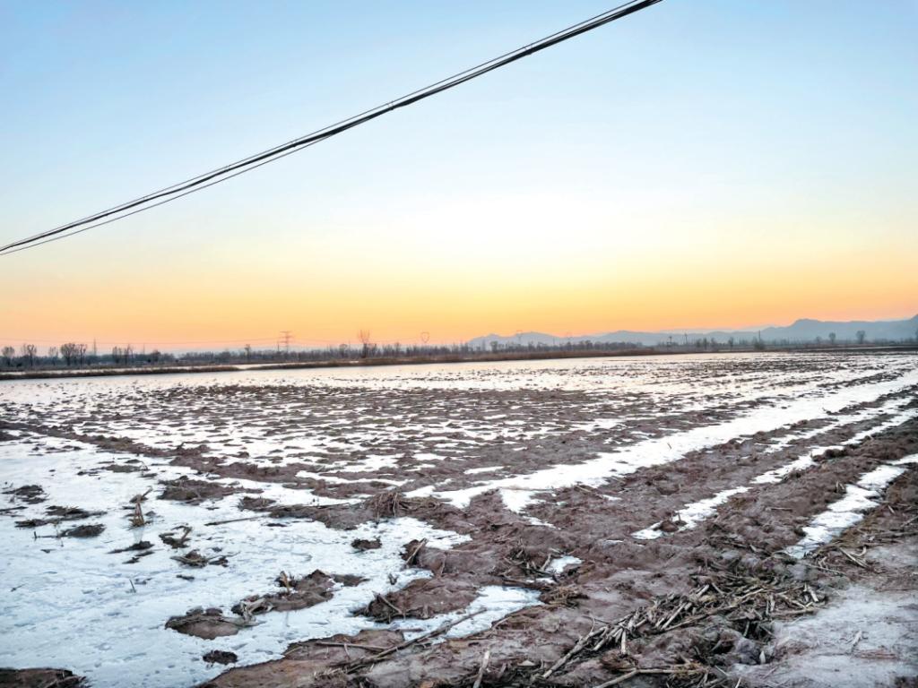 冬至前后,忻府區(qū)忻口鎮(zhèn)滹沱河沿岸6萬余畝農(nóng)田冬澆后全部封凍,開啟了“冬眠”模式。 忻口鎮(zhèn)農(nóng)民歷來有秋翻冬澆的傳統(tǒng)。每年秋收過后,對土地進行深翻,上凍之前引水漫灌。隨著氣溫下降,澆足了冬澆水的農(nóng)田全部封凍。這樣做,具有改善土壤結構、壓堿蓄墑、消滅部分越冬害蟲、降低蟲基數(shù)及提高作物產(chǎn)量等作用。