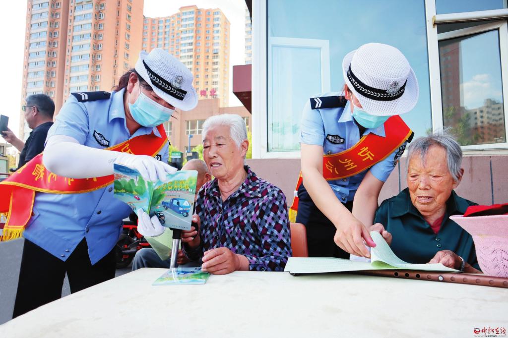 民警通過(guò)面對(duì)面講解、網(wǎng)上直播、有獎(jiǎng)問(wèn)答及發(fā)放宣傳資料等多種形式,向群眾講解了道路交通安全法律法規(guī),無(wú)牌無(wú)證、涉牌涉證、超速超員、疲勞駕駛、酒后駕駛、駕乘摩托車(chē)電動(dòng)自行車(chē)不戴安全頭盔等交通違法行為的嚴(yán)重后果以及事故對(duì)個(gè)人、家庭和社會(huì)的危害,倡導(dǎo)居民不斷增強(qiáng)自我防范意識(shí),摒棄交通陋習(xí),珍愛(ài)生命,平安出行,爭(zhēng)做文明、禮讓、遵規(guī)、守法的交通參與者。(記者 張志遠(yuǎn)攝)