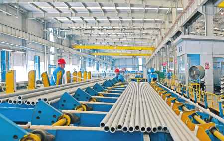 巨大的生產(chǎn)車間內(nèi),機(jī)器轟鳴,一根根坯料經(jīng)過穿孔、酸洗、拋光、冷軋等近40道工序,變成锃亮堅(jiān)固的不銹鋼管,發(fā)往國(guó)內(nèi)外企業(yè),成為電站、鐵路、新能源、油氣開采等行業(yè)的重要材料。在山西太鋼不銹鋼鋼管有限公司,一系列特色管材產(chǎn)品實(shí)現(xiàn)了在重大裝備上的突破性應(yīng)用,提高了太鋼鋼管產(chǎn)品的美譽(yù)度和競(jìng)爭(zhēng)力。