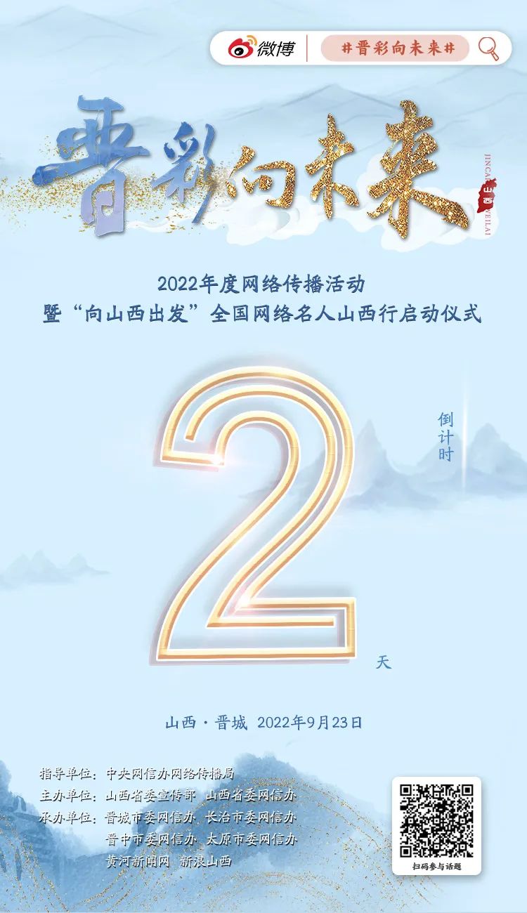 “晉彩向未來”年度網(wǎng)絡(luò)傳播活動(dòng),是“非凡十年?奮‘晉’未來”系列網(wǎng)絡(luò)主題宣傳活動(dòng)之一?;顒?dòng)共分為短視頻征集活動(dòng)、全國(guó)網(wǎng)絡(luò)名人山西行、優(yōu)秀作品展播三階段推進(jìn),目前短視頻征集已在線上預(yù)熱開啟?!皶x彩向未來”2022年度網(wǎng)絡(luò)傳播活動(dòng)暨“向山西出發(fā)”全國(guó)網(wǎng)絡(luò)名人山西行活動(dòng)將于9月23日正式啟動(dòng)。