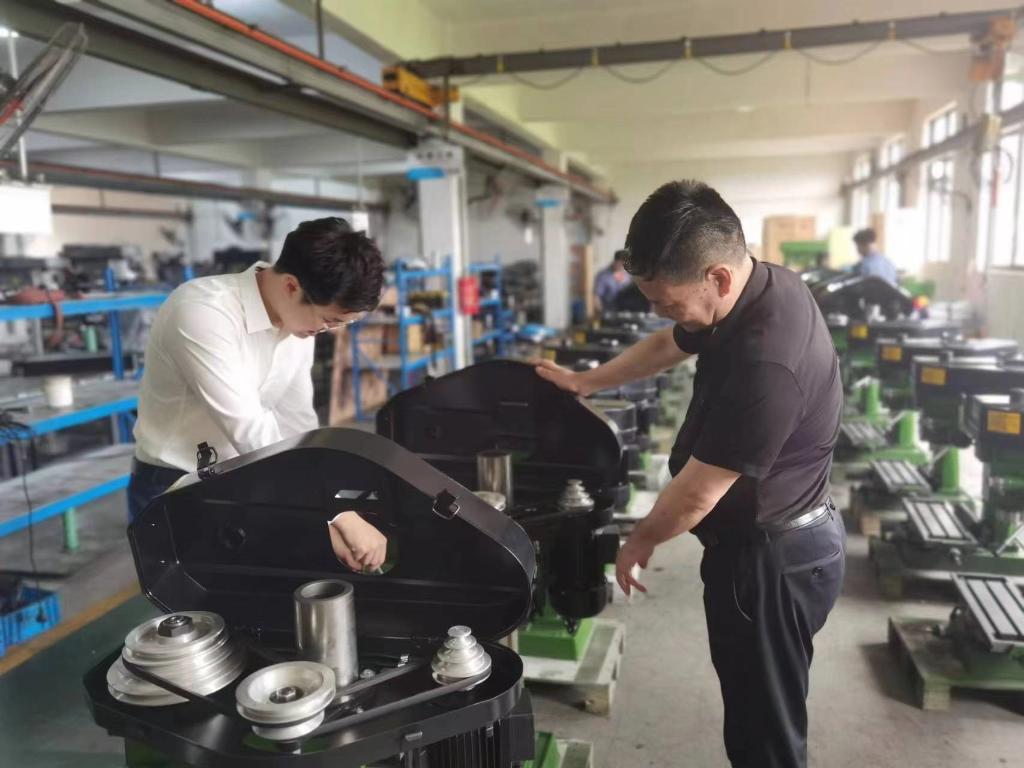 受疫情影響,2021年外貿(mào)企業(yè)訂單量隨著海運(yùn)放緩、海外需求下降而減少。生產(chǎn)閑下來(lái)了,但繆繼云和兒子繆帥濤對(duì)產(chǎn)品改良的思考沒有停止。在不斷調(diào)試臺(tái)鉆時(shí),他們發(fā)現(xiàn),調(diào)速必須動(dòng)手換皮帶,“為什么不能像調(diào)收音機(jī)一樣調(diào)動(dòng)速率呢?”兩人一商量,立即開始畫草圖,接著去銀行貸款投入模具開發(fā)。