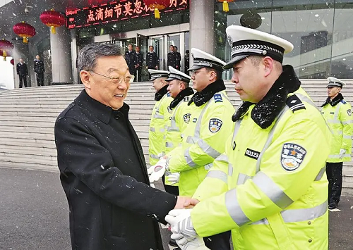 唐登杰先后來到國網(wǎng)山西省電力公司、太原市公安局交通警察支隊(duì)和太原市天然氣公司新建路管理站,深入了解電力保供、交通保暢、燃?xì)獍踩裙ぷ鬟\(yùn)行情況,向值班值守人員送上新春祝福。他指出,群眾利益無小事。進(jìn)入春節(jié)假期,做好各項(xiàng)公共服務(wù)工作十分重要。希望大家繼續(xù)發(fā)揚(yáng)優(yōu)良傳統(tǒng),增強(qiáng)主動(dòng)服務(wù)意識(shí),用自己的“辛苦指數(shù)”換來群眾的“幸福指數(shù)”。要優(yōu)化值班值守和輪崗輪休安排,做好后勤服務(wù)保障,讓堅(jiān)守崗位的同志感受到組織的關(guān)愛和濃濃的年味。