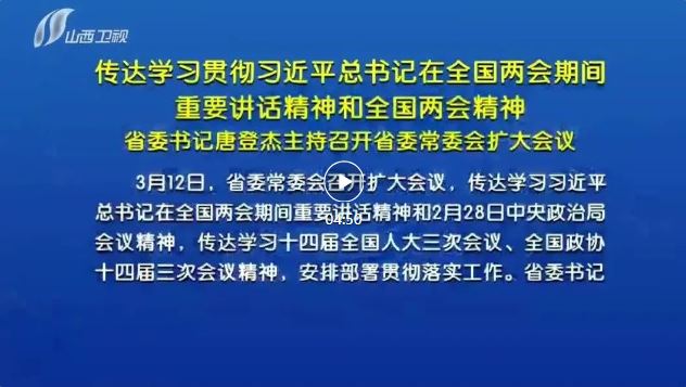山西日?qǐng)?bào)報(bào)道3月12日,省委常委會(huì)召開擴(kuò)大會(huì)議,傳達(dá)學(xué)習(xí)習(xí)近平總書記在全國兩會(huì)期間重要講話精神和2月28日中央政治局會(huì)議精神,傳達(dá)學(xué)習(xí)十四屆全國人大三次會(huì)議、全國政協(xié)十四屆三次會(huì)議精神,安排部署貫徹落實(shí)工作。省委書記唐登杰主持會(huì)議。