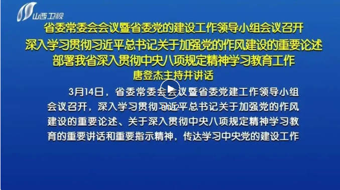 山西日報報道 3月14日,省委常委會會議暨省委黨建工作領(lǐng)導小組會議召開,深入學習貫徹習近平總書記關(guān)于加強黨的作風建設的重要論述、關(guān)于深入貫徹中央八項規(guī)定精神學習教育的重要講話和重要指示精神,傳達學習中央黨的建設工作領(lǐng)導小組會議精神,按照《關(guān)于在全黨開展深入貫徹中央八項規(guī)定精神學習教育的通知》要求,對全省開展學習教育進行安排部署,審議通過《關(guān)于在全省開展深入貫徹中央八項規(guī)定精神學習教育的實施方案》。省委書記、省委黨的建設工作領(lǐng)導小組組長唐登杰主持會議并講話。