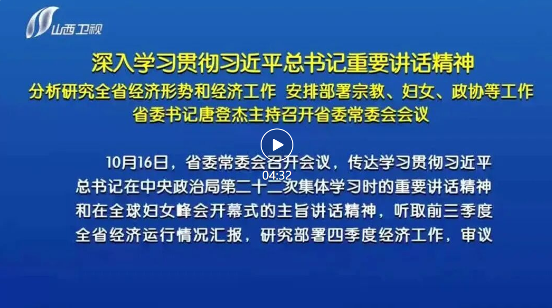 10月16日,省委常委會(huì)召開(kāi)會(huì)議,傳達(dá)學(xué)習(xí)貫徹習(xí)近平總書(shū)記在中央政治局第二十二次集體學(xué)習(xí)時(shí)的重要講話精神和在全球婦女峰會(huì)開(kāi)幕式的主旨講話精神,聽(tīng)取前三季度全省經(jīng)濟(jì)運(yùn)行情況匯報(bào),研究部署四季度經(jīng)濟(jì)工作,審議通過(guò)《關(guān)于完善制度機(jī)制充分發(fā)揮人民政協(xié)專(zhuān)門(mén)協(xié)商機(jī)構(gòu)作用的意見(jiàn)》。省委書(shū)記唐登杰主持會(huì)議。