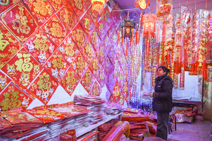 1月19日,市民在北京一商場(chǎng)內(nèi)選購春節(jié)裝飾品。新華社記者李欣攝