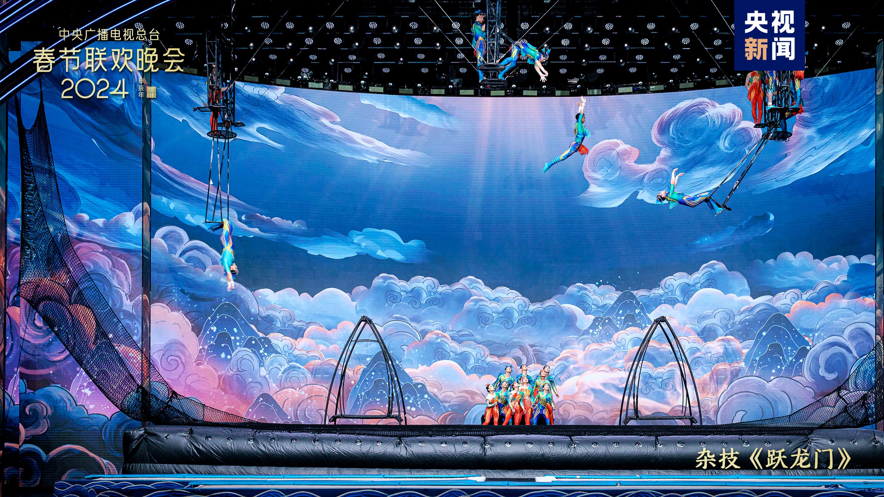 戲曲節(jié)目《百花爭艷》中,老少中青群英會(huì),演繹百萬金戈鐵馬、千年戀愛傳奇,國家級非物質(zhì)文化遺產(chǎn)潮劇首次在總臺春晚舞臺綻放華彩。雜技《躍龍門》結(jié)合競技體育項(xiàng)目“蹦床”和雜技“浪橋飛人”,表現(xiàn)出奮勇向前、更上層樓的干勁闖勁。陜西西安分會(huì)場全民齊誦詩詞歌賦,恢宏大氣的《山河詩長安》令人詩情澎湃、暢懷無限;多民族載歌載舞、共賀新春,新疆喀什分會(huì)場的《舞樂新疆》節(jié)奏歡快氣氛熱烈,展現(xiàn)石榴籽一樣緊緊抱在一起的各民族一家親。