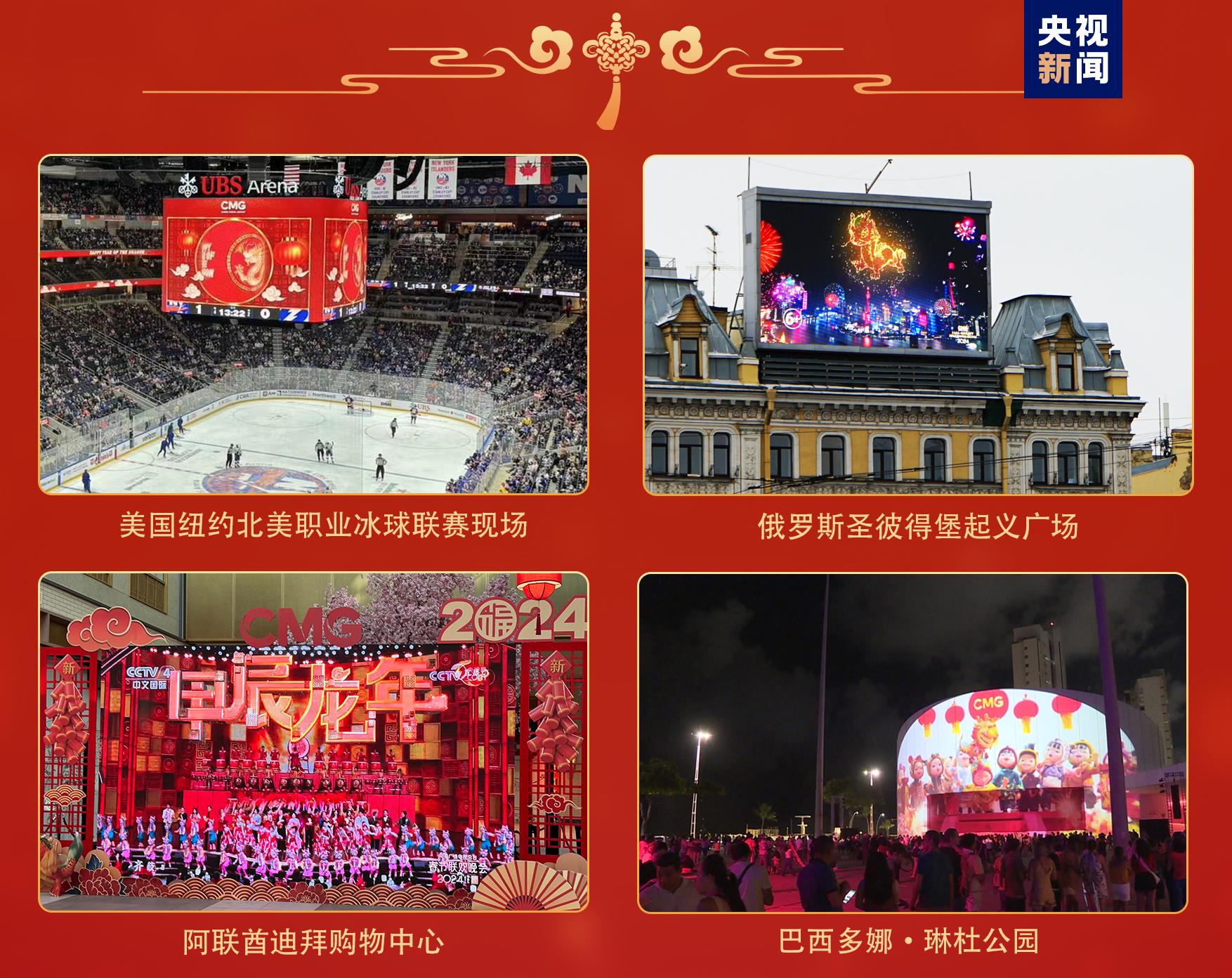全球看春晚。作為聯(lián)合國大會(huì)將農(nóng)歷新年列為聯(lián)合國假日后的首個(gè)新年,總臺主辦的“春晚序曲 全球看春晚”活動(dòng)在美國、肯尼亞、瑞士等多國舉辦近40場;各大洲49個(gè)國家、90座城市的3000余塊公共大屏直播和宣介總臺春晚;世界最高建筑迪拜哈利法塔、非洲第一高樓埃及新行政首都中央商務(wù)區(qū)標(biāo)志塔、瑞典斯德哥爾摩市中心國王花園廣場、巴西多娜·琳杜公園等多個(gè)全球地標(biāo)性建筑上演春晚燈光秀……靈動(dòng)吉祥的“龍辰辰”將中國新年的美好祝愿傳遍全球。