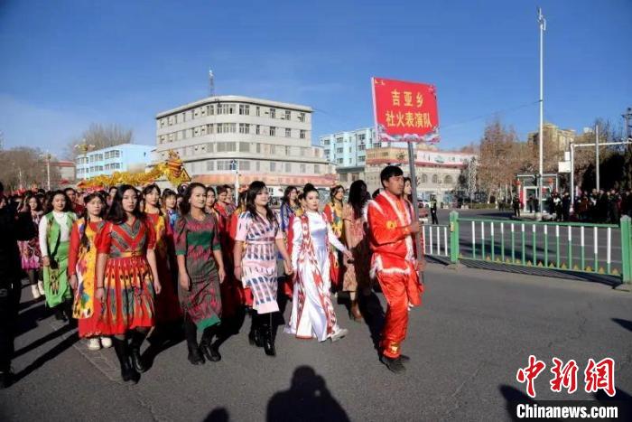 2月12日,農(nóng)歷正月初三,和田市舉行2024年“龍騰盛世·春滿(mǎn)萬(wàn)家”社火活動(dòng),和田市伊里其鄉(xiāng)社火表演隊(duì)巡街。 張亞輝 攝