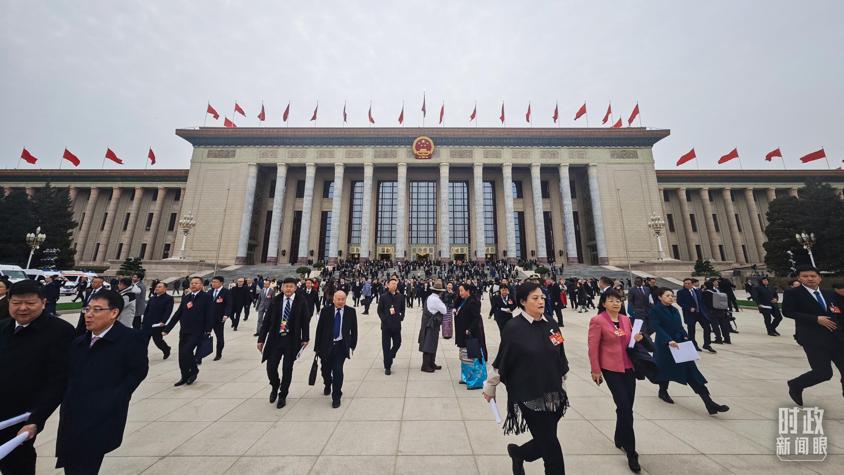 △3月4日,人民大會堂,政協(xié)委員們在開幕會后離場。(總臺央視記者彭漢明拍攝)