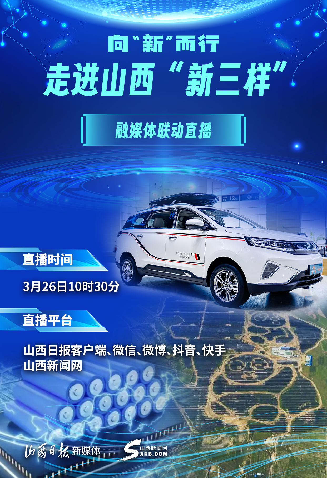 山西日?qǐng)?bào)新媒體記者張馨報(bào)道 2024年的春天,萬象生輝,蓬勃奮進(jìn)。在3月中旬結(jié)束的2024全國(guó)兩會(huì)上,“新三樣”成為熱詞。3月26日,山西日?qǐng)?bào)新媒體、山西新聞網(wǎng)聯(lián)合推出——向“新”而行,走進(jìn)山西“新三樣”融媒體聯(lián)動(dòng)直播。