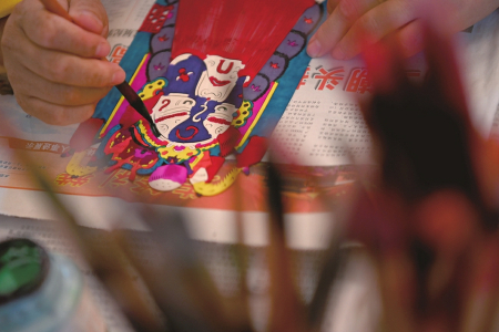 這么有趣的剪紙作品又是如何誕生的呢?走進(jìn)該博物館剪紙制作車間,只見學(xué)員們手中的刻刀上下跳動(dòng),一件件精美的剪紙作品雛形便逐漸顯現(xiàn)?!耙患艏堊髌返闹谱鹘^對(duì)不是靠簡簡單單的一把剪刀、一張紅紙就可以完成的,它要經(jīng)歷設(shè)計(jì)、刀刻、顏染、裝裱4個(gè)大步驟38個(gè)小步驟?!辈┪镳^講解員曹慧中指著剪紙學(xué)員對(duì)眾人說,“他們正在進(jìn)行的是刀刻這一道工序,我們不要求每個(gè)人每個(gè)工序都會(huì)都熟練,熟練的剪紙藝人制作一件剪紙作品也得花費(fèi)一天時(shí)間,剪紙的制作需要團(tuán)結(jié)協(xié)作而不是單打獨(dú)斗。”