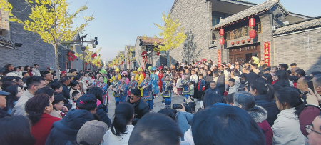 踏著節(jié)奏感十足的古風(fēng)電音,一群身著古服、戲裝的年輕人從人群中跳出來(lái),瞬時(shí)集結(jié)編隊(duì),跳起熱舞。圍觀的人群跟著沸騰起來(lái),大家鼓掌打拍、搖擺身姿,爆發(fā)出陣陣歡呼聲。農(nóng)歷大年初六,沁水縣土沃鄉(xiāng)下沃泉村的“沃泉星夢(mèng)童年小鎮(zhèn)”街道上,正在進(jìn)行的“國(guó)潮快閃”表演掀起歡樂(lè)浪潮。不止這一刻,也不止這一處。從大年初一開(kāi)始,這里每天歡娛不停,處處熱鬧非凡。