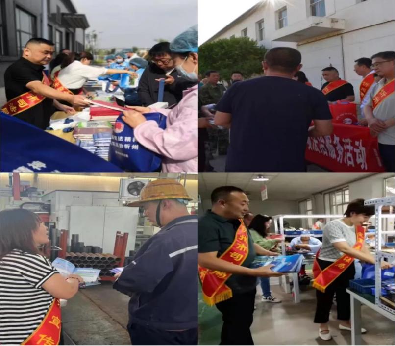 法律服務(wù)團向企業(yè)管理人員及職工發(fā)放《憲法》500本、《民法典》以及《民法典進企業(yè)》10000本、《合同法》5000本、《山西省優(yōu)化營商環(huán)境條例》4000本、以及《行政復(fù)議法》400本和其他法律法規(guī)書籍;發(fā)放公證證明材料清單1000本、100份便民聯(lián)系卡和法律政策明白卡,毛巾300份、圍裙300份、水杯300個、筆記本300本、雨傘100把等法治宣傳用品。同時,講解法律案例,宣講涉企公證、鑒定和仲裁知識,將法治宣傳與企業(yè)日常生產(chǎn)、經(jīng)營管理以及員工生活聯(lián)系起來,為企業(yè)發(fā)展?fàn)I造良好法治環(huán)境。